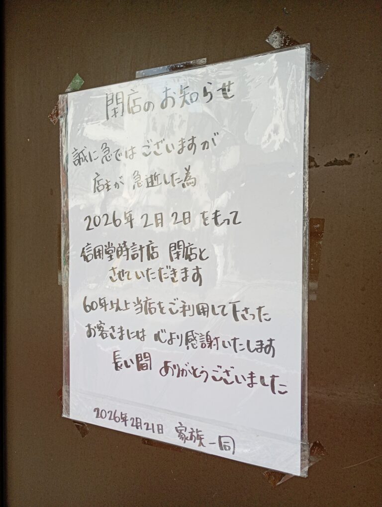 【閉店@赤塚】2026年2月2日「信用堂時計店」が閉店。赤塚の街を見守り続けて6…