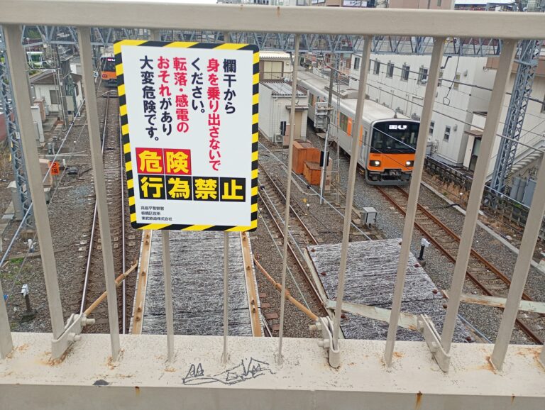 2026年3月成増西歩道橋に「危険行為禁止」の看板が設置。