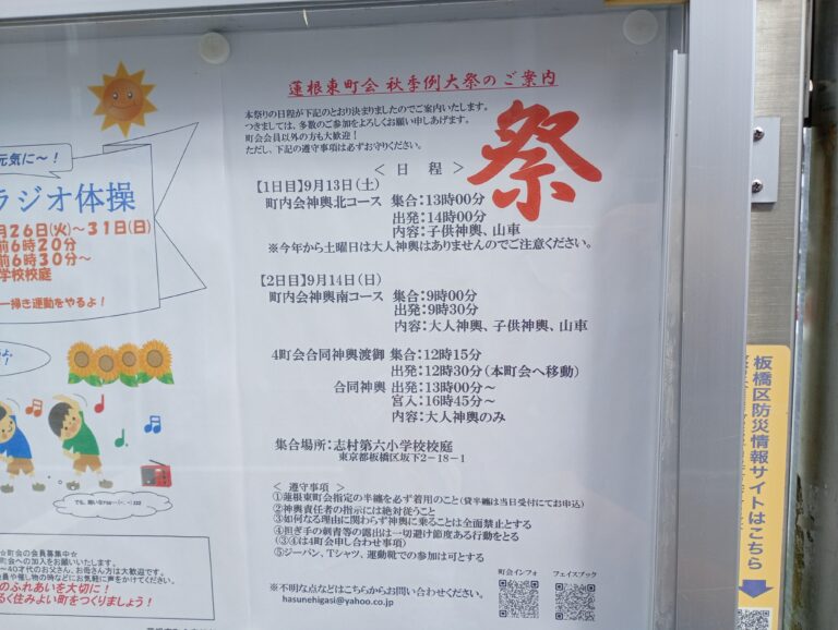 2025年9月13日㈯14日㈰志村第六小学校にて「蓮根東町会 秋季例大祭」が開催されます。お神輿や山 […]