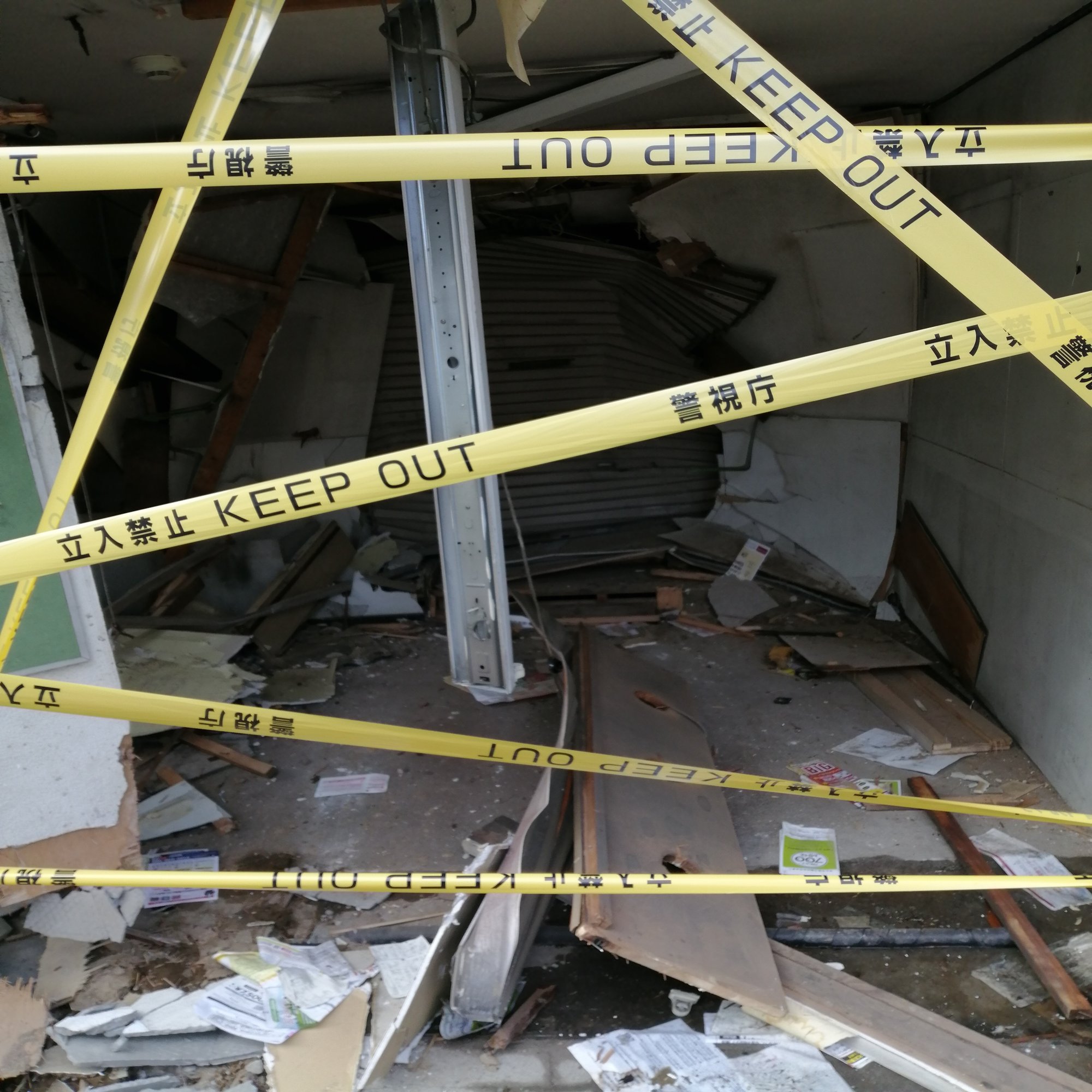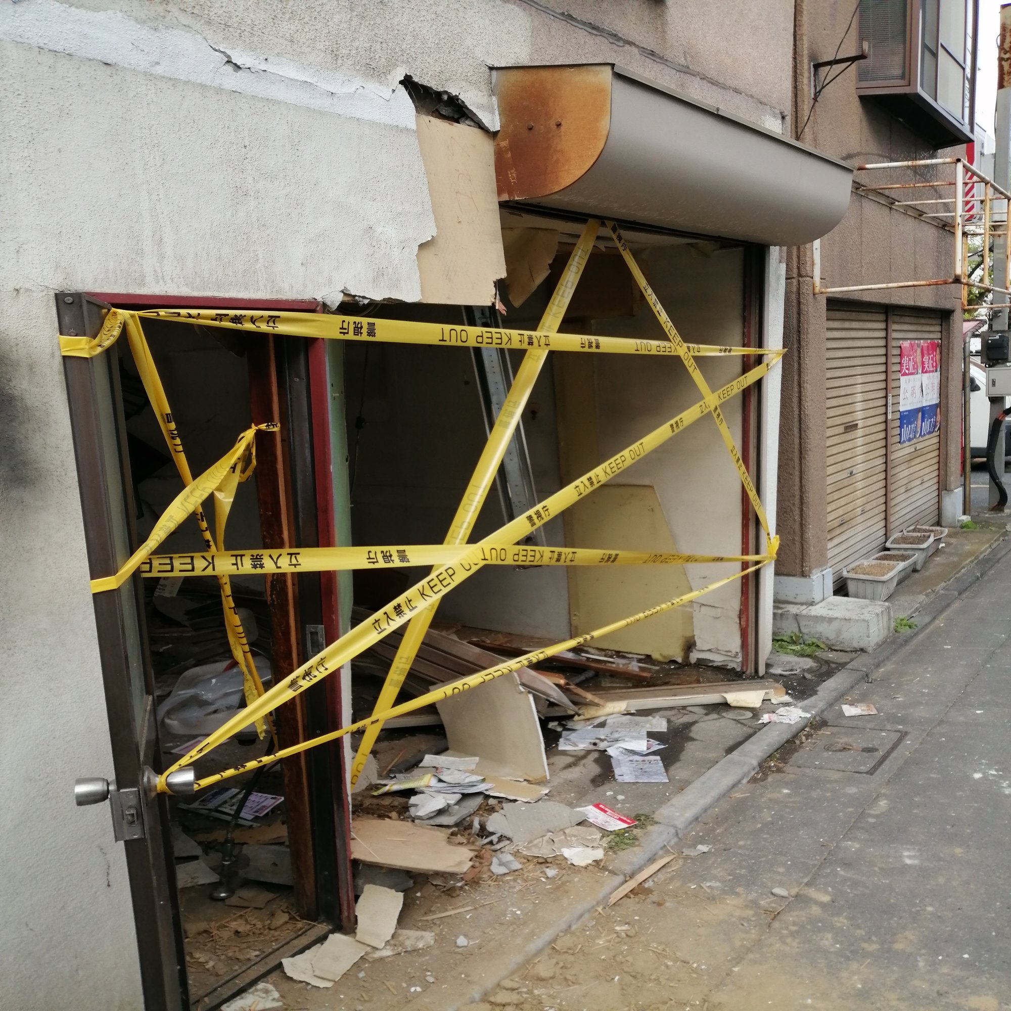 店舗は廃業していたため営業被害はありませんが建物は大破しています。