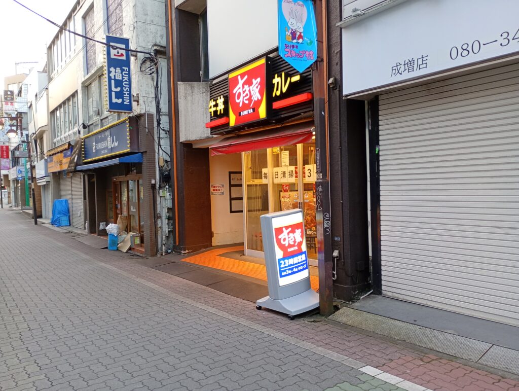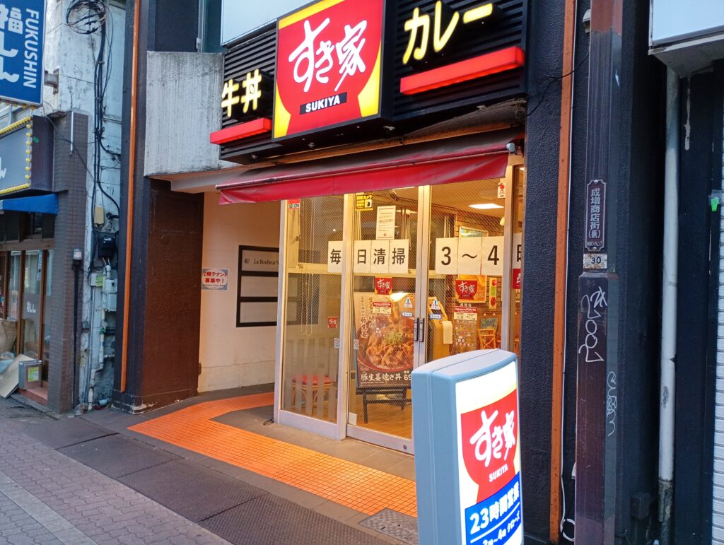 2025年3月31日すき家成増店が休店しました。相次ぐ異物混入を受けての店舗清掃を目的とした休店とのことです。