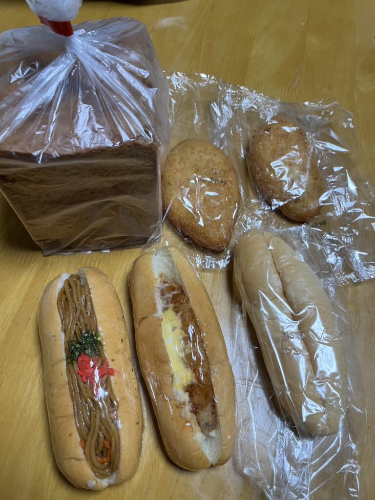 レジ前には、お買い得な食パンや賞味期限が切れが近いパンのフードロス対策セール品があって、来店するたびに違った商品が並んでいるので、いつも楽しませて頂いております。この日は塩バターパンがめっちゃ安くなっていました。