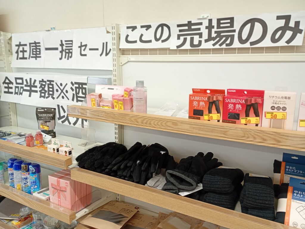 閉店を前に店内では一部の商品について半額セールを行っていますので、よかったら足を運ばれてみてはいかがでしょうか。意外な掘り出し物があるかも!?