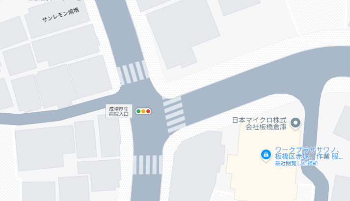 建物の前には信号機があるのですが、この信号機は成増4丁目(サンレモン成増)と三園1丁目(成増厚生病院)と赤塚4丁目(ワークプラザサワノ)が隣接しているので、信号を渡ると住所が変わるというちょっと興味深い信号だったりします。