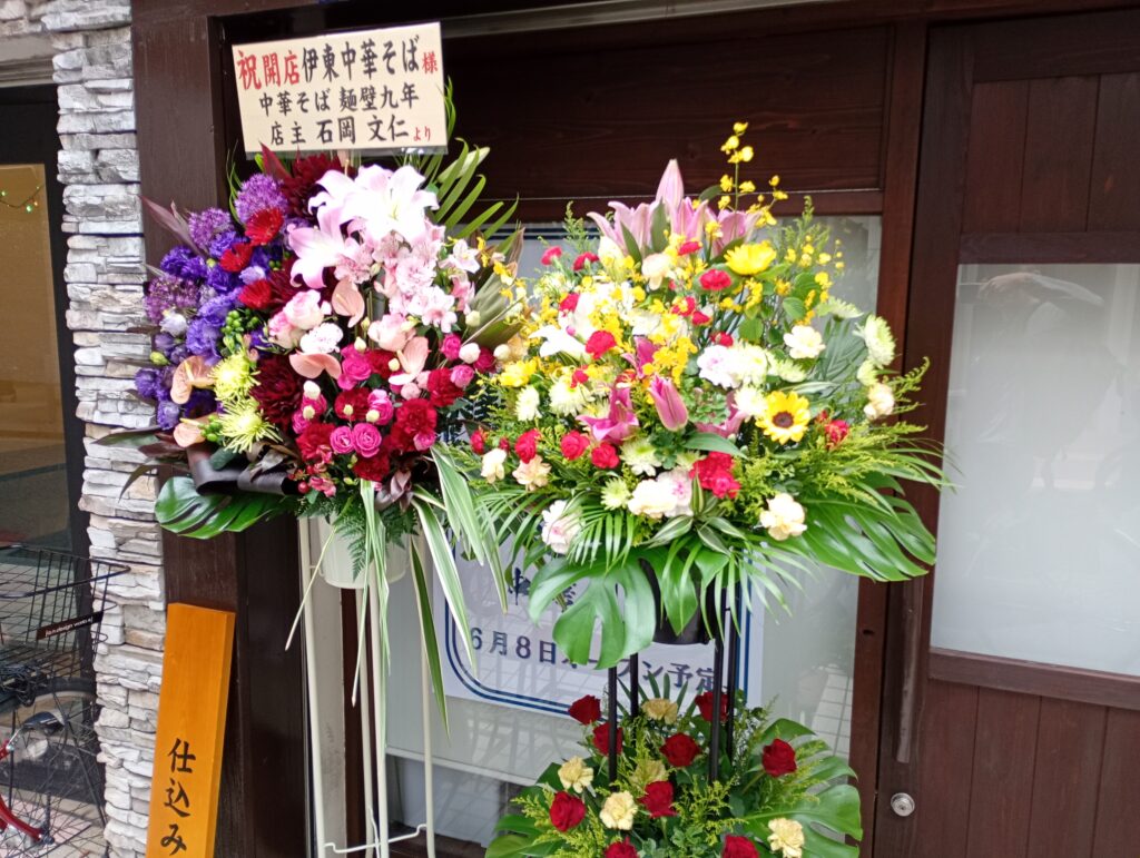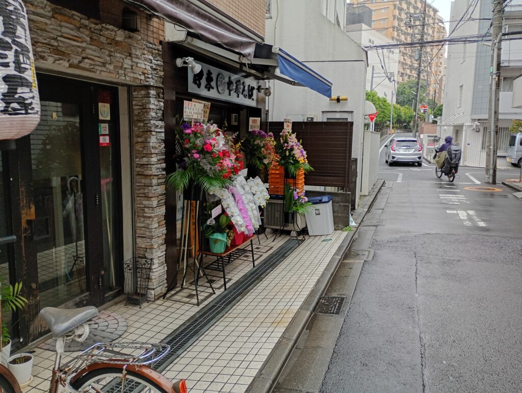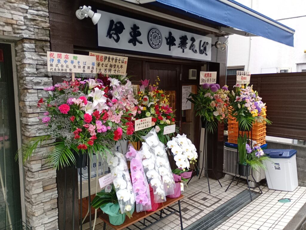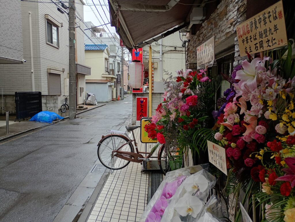 オープン時に井荻の中華そばの名店「麺壁九年」の花が出ていました。期待が持てる。