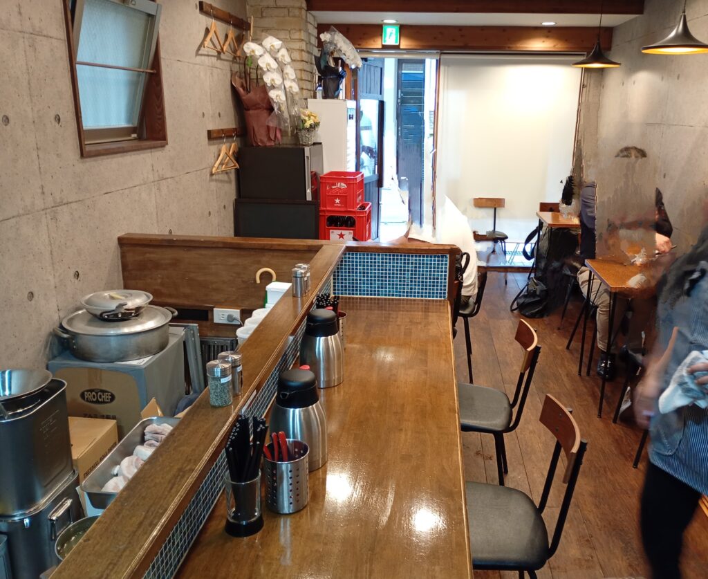 店内はカウンター席が3席と二人掛けのテーブルが2席、四人掛けのテーブル席が一つで全部で11席となっています。