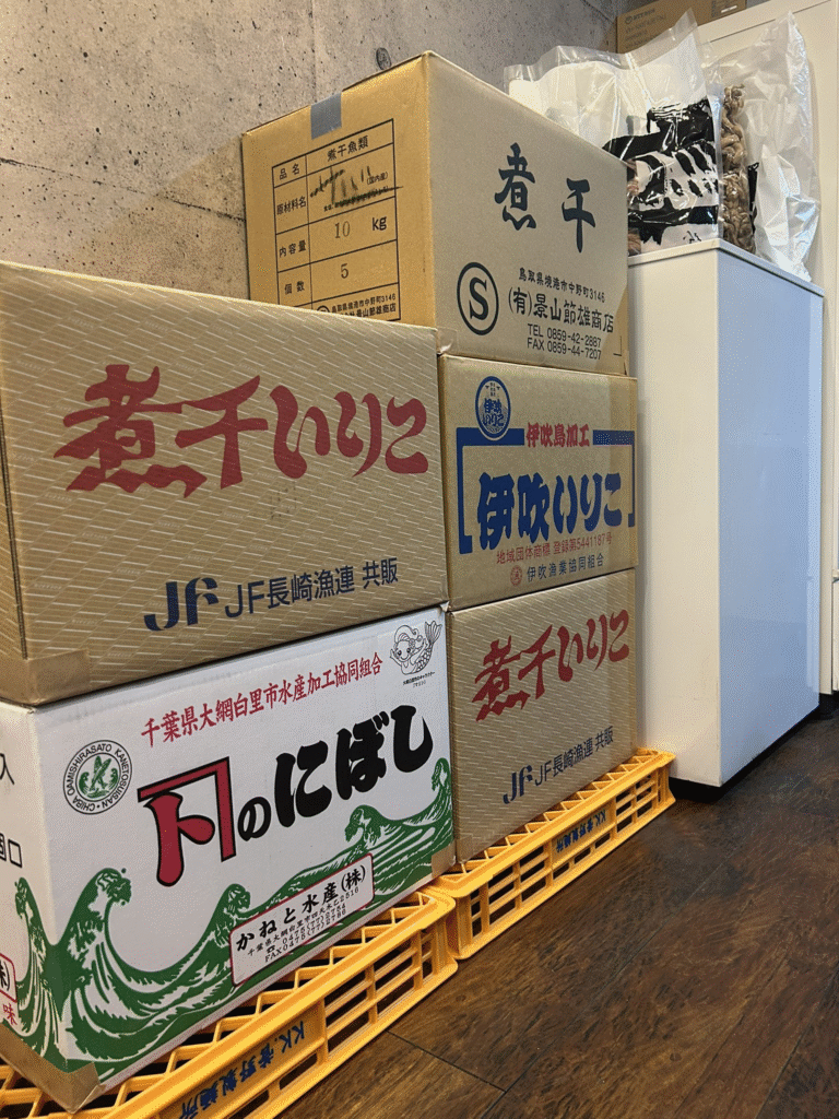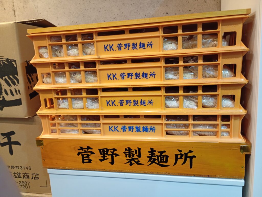 店内には菅野製麺所の麺屋煮干し、醤油等のこだわり抜いた材料が整然と積まれていました。