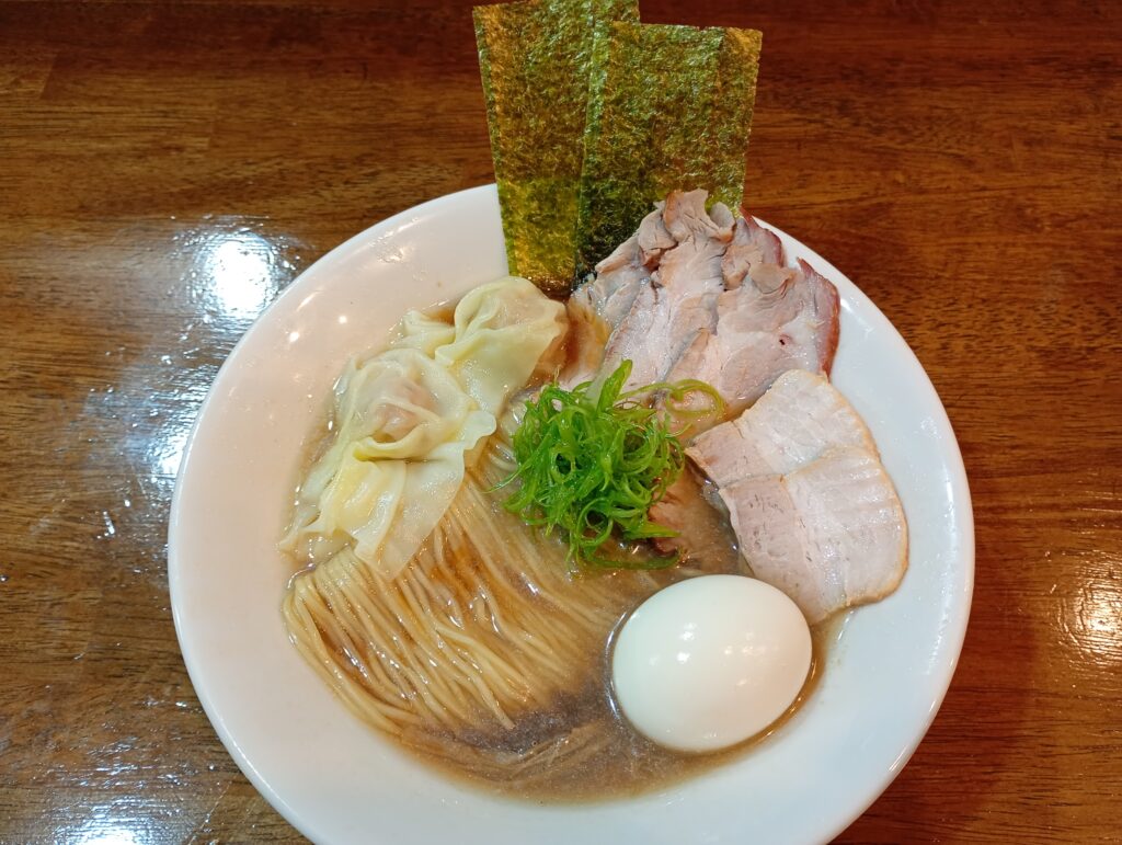 中華そば1,000円、ワンタン中華そば1,250円、特製中華そば1,450円となっています。トッピングはワンタン4個250円、味玉150円、のり150円等があります。