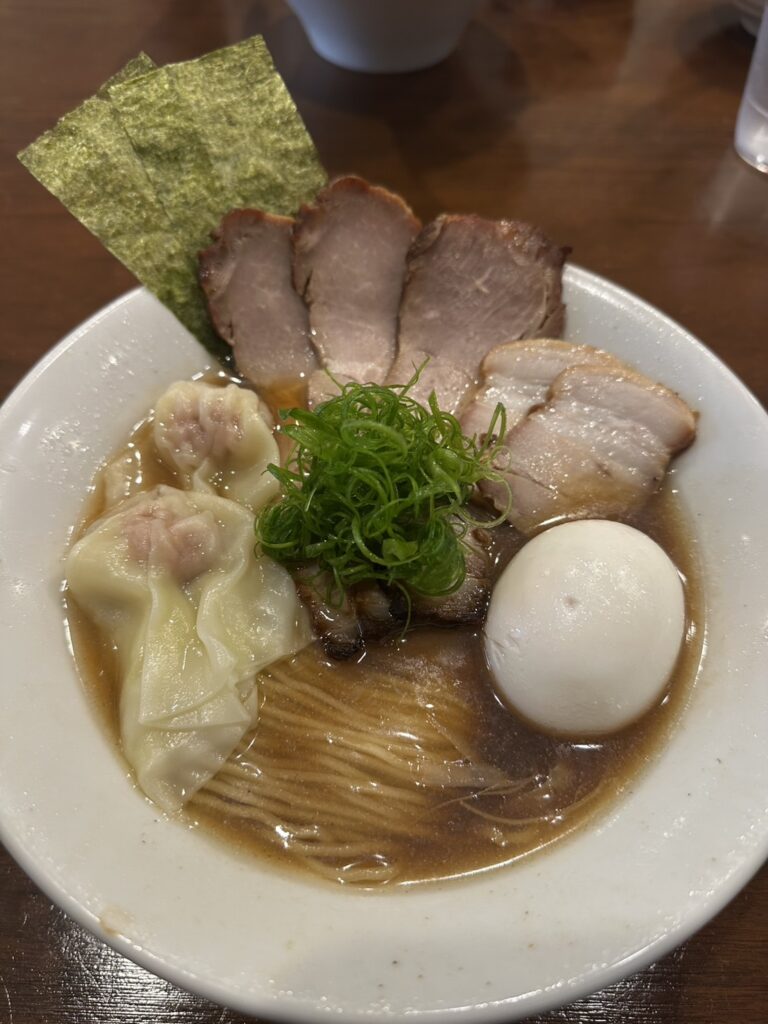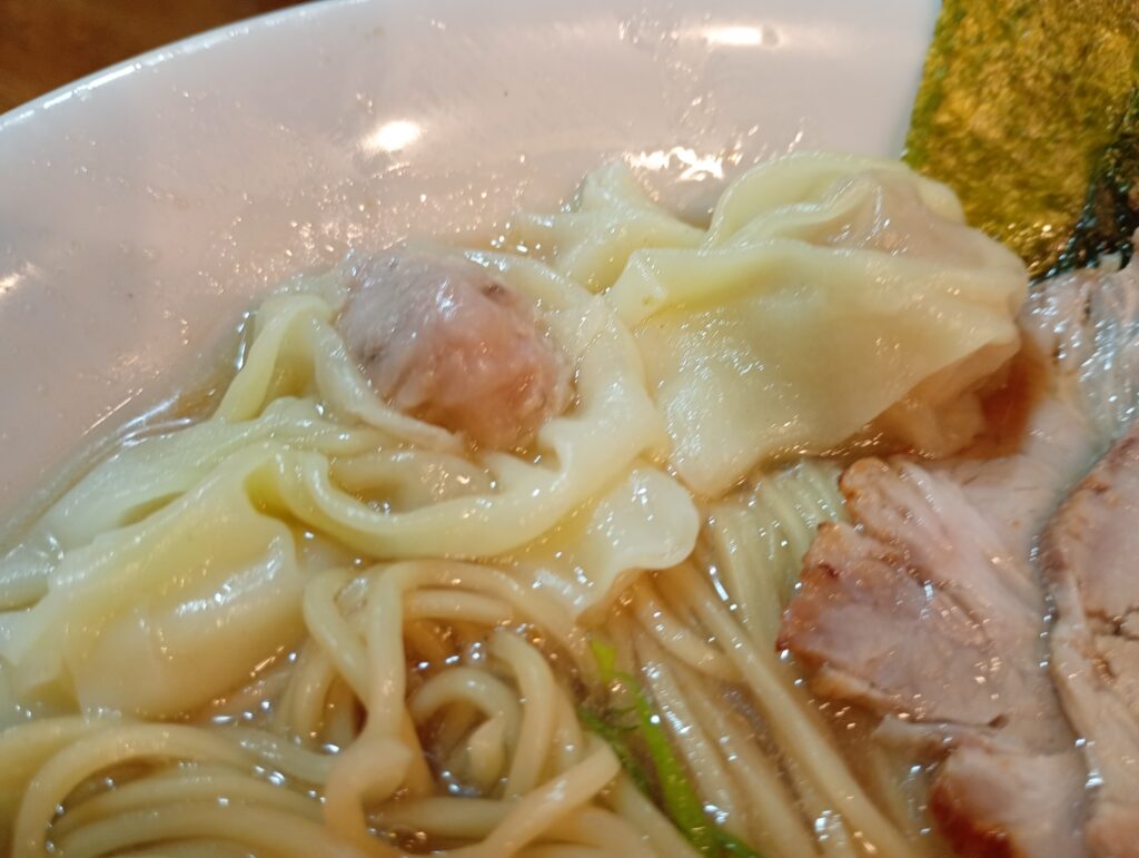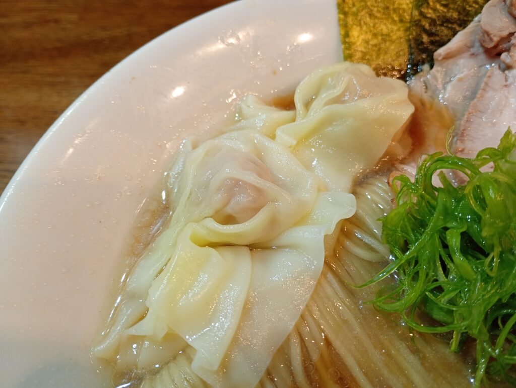 ワンタンは2つ入っており、モチモチの食感で具材もしっかり入っていて食べごたえがありました。