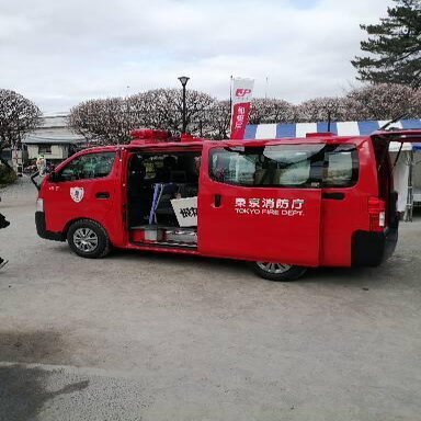 子供に人気の消防隊の車も!