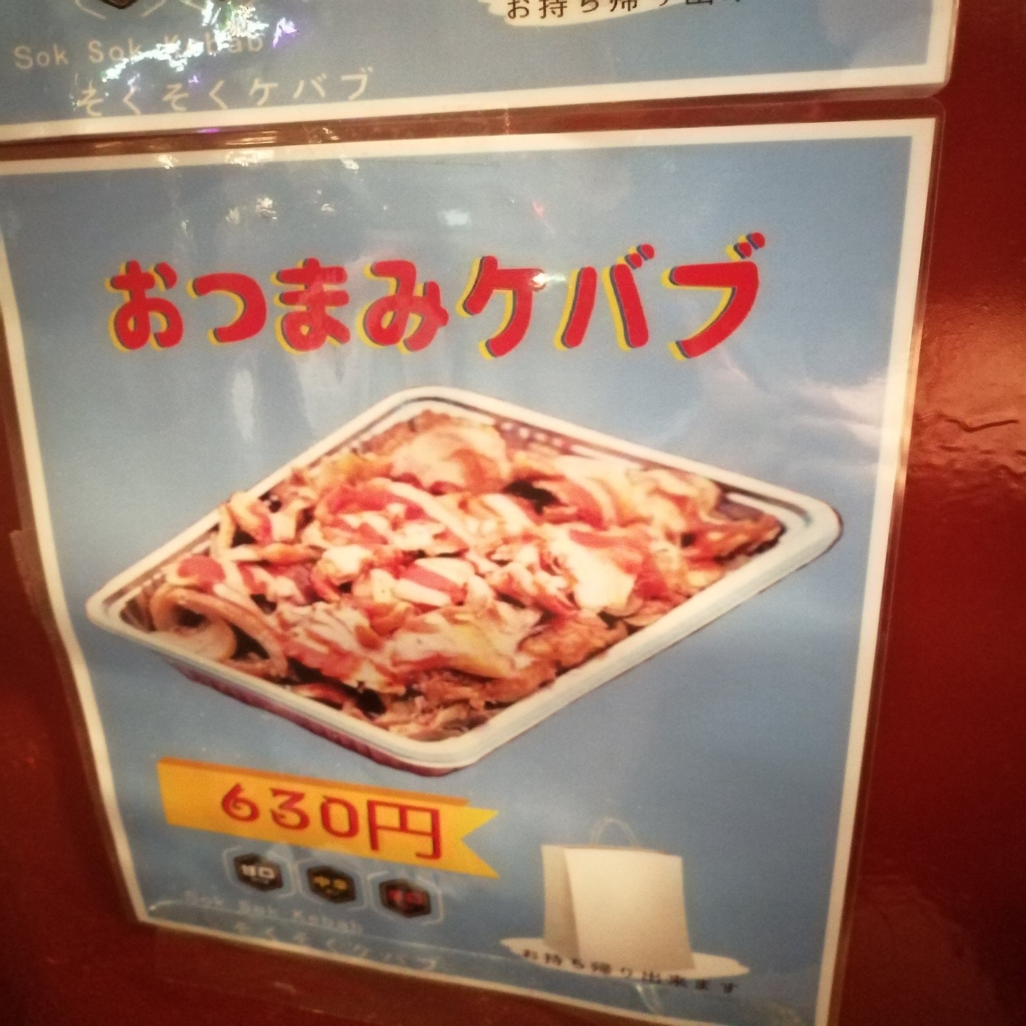 メニューは「ケバブサンド」、「オツマミケバブ」、「ケバブ丼」が630円です。ペイペイでも支払うことができます。