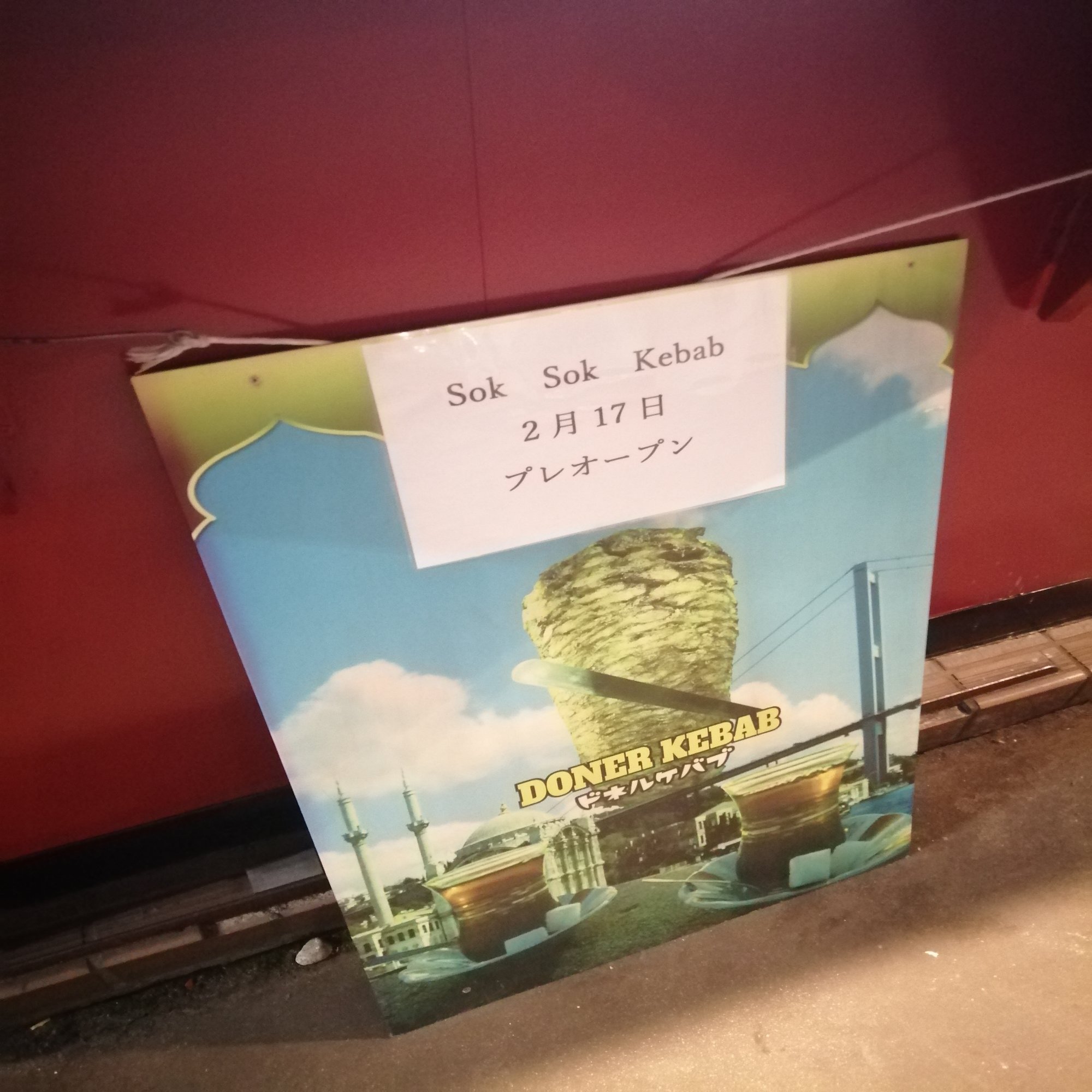 新しくできるお店はケバブ屋さんだとのことです。お店の方に少しお話をお伺いすると、2月1日に契約してそこから僅か2週間でオープンとのことです。ケバブ屋さんは初期投資や設備が少なくてもできるので機動性がすごいですね。