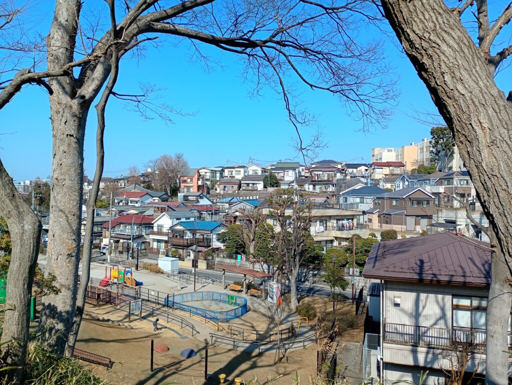 崖を利用してつくられた公園なので、子供たちが鬼ごっことかよくしています。