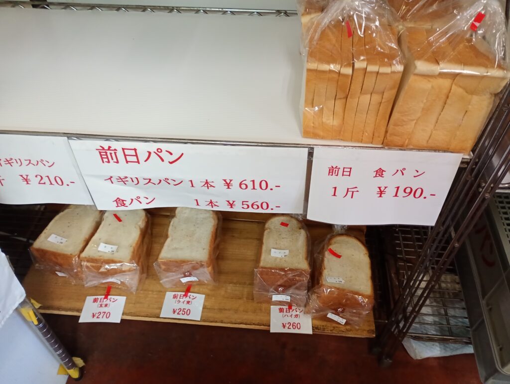 前日パンは少し安くなっていて、お買い求めやすくなっています。