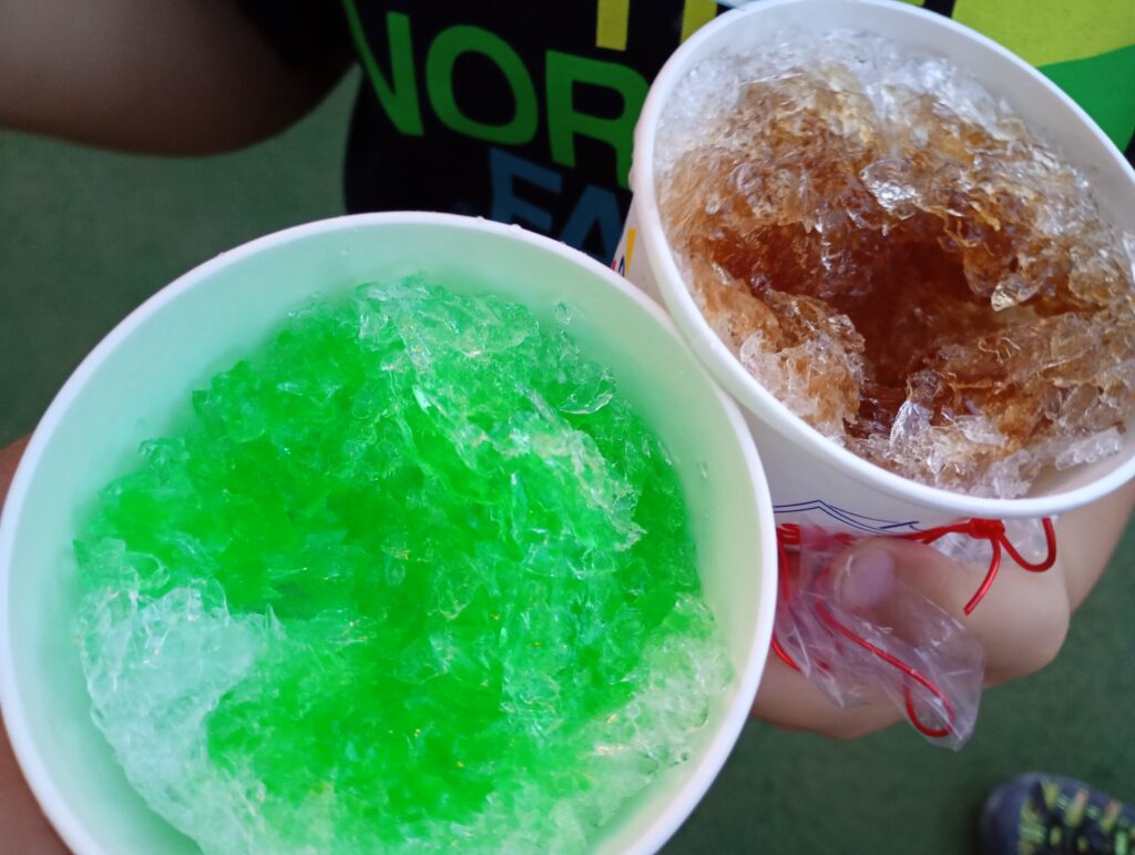 かき氷は150円でした。他にもフランクフルト200円、焼きそば450円等がありました。