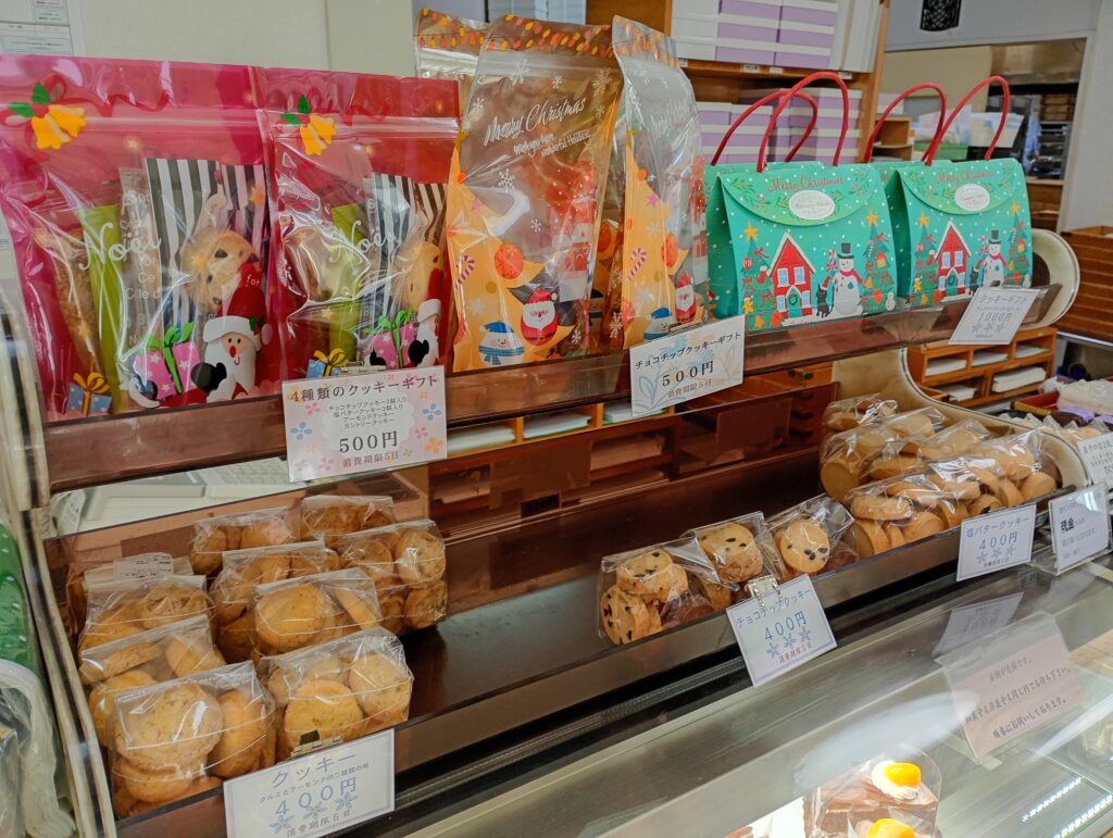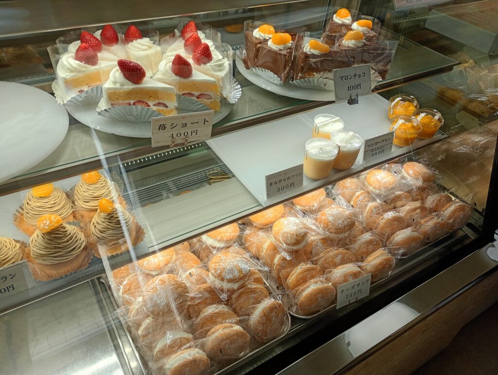 扱う商品は多岐にわたり、洋菓子とご覧のラインナップです。値段も安心価格なので子どものおやつなどにも購入しやすいです。創業された昭和25年は戦後間もないころで、洋菓子を扱うお店は少なかったそうです(HP)。