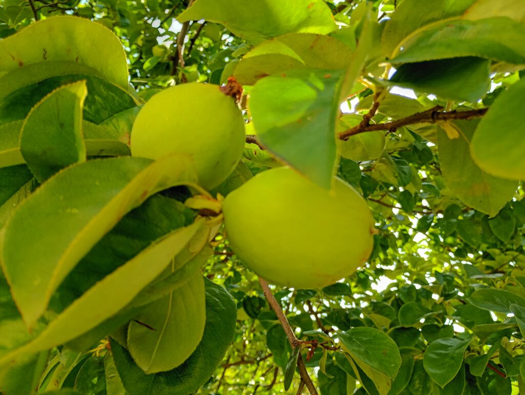 かりん公園の入口にはかりんの木が植わっているのですが、夏になり実がおおきくなっていました。
