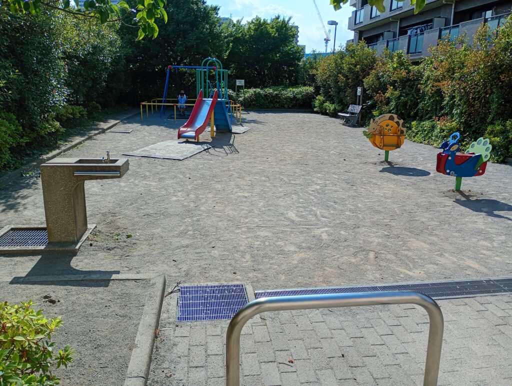 こちらがかりん公園になります。RONDOプールさんや旭幼稚園さんが近隣にありますので、小さな公園ながら子供達でいつも賑わっています。