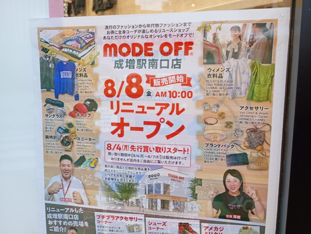 成増駅南口ロータリーにあるモードオフ成増駅南口店が2025年06月22日から一時閉店となり、2025年8月8日にリニューアル予定となります。