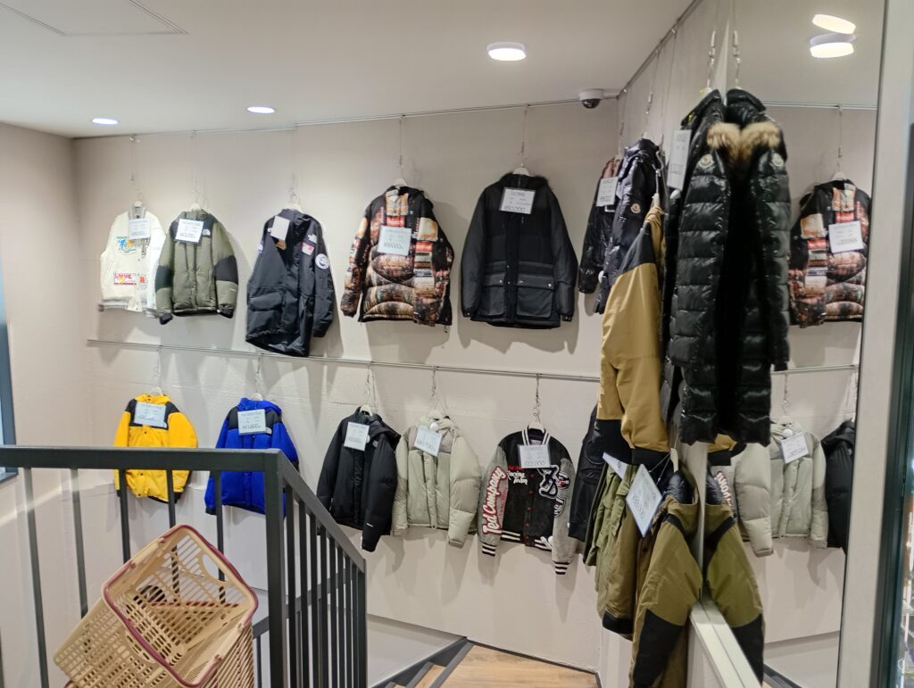 ノースフェイスやMONCLER等の人気商品も多く壁にかかっていました。