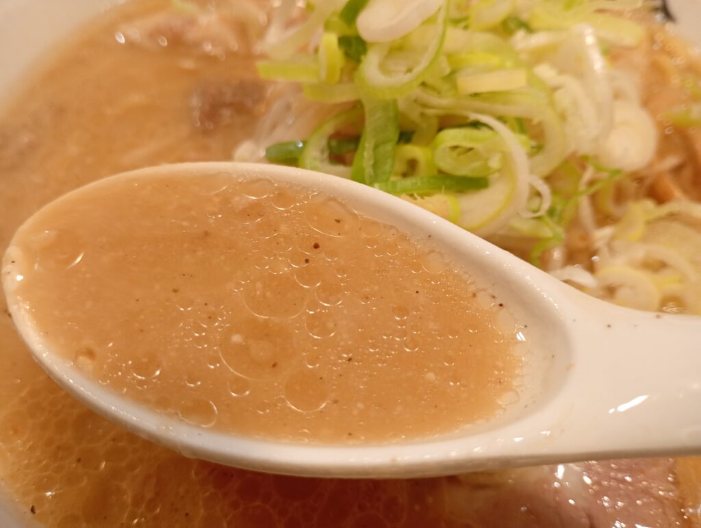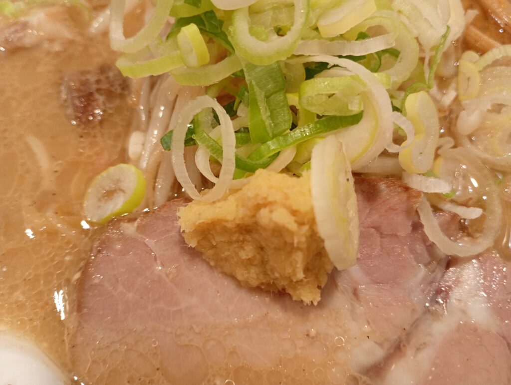 豚骨をベースにしたスープは、濃厚でコクがありながらも、後味は意外にもすっきり。味噌の豊かな香りと風味が口いっぱいに広がり、生姜やニンニクの風味が絶妙なアクセントとなっています。一口すするごとに、その奥深い味わいに引き込まれていくことでしょう。