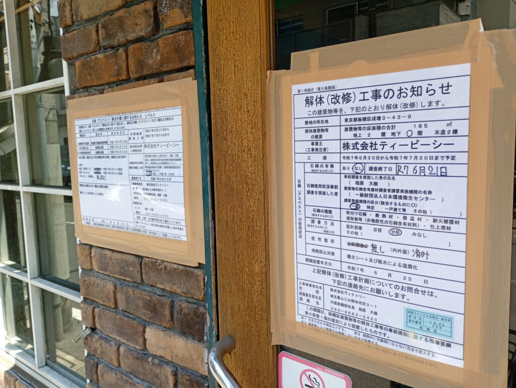 2025年6月下旬になり解体工事のお知らせが掲示されました。