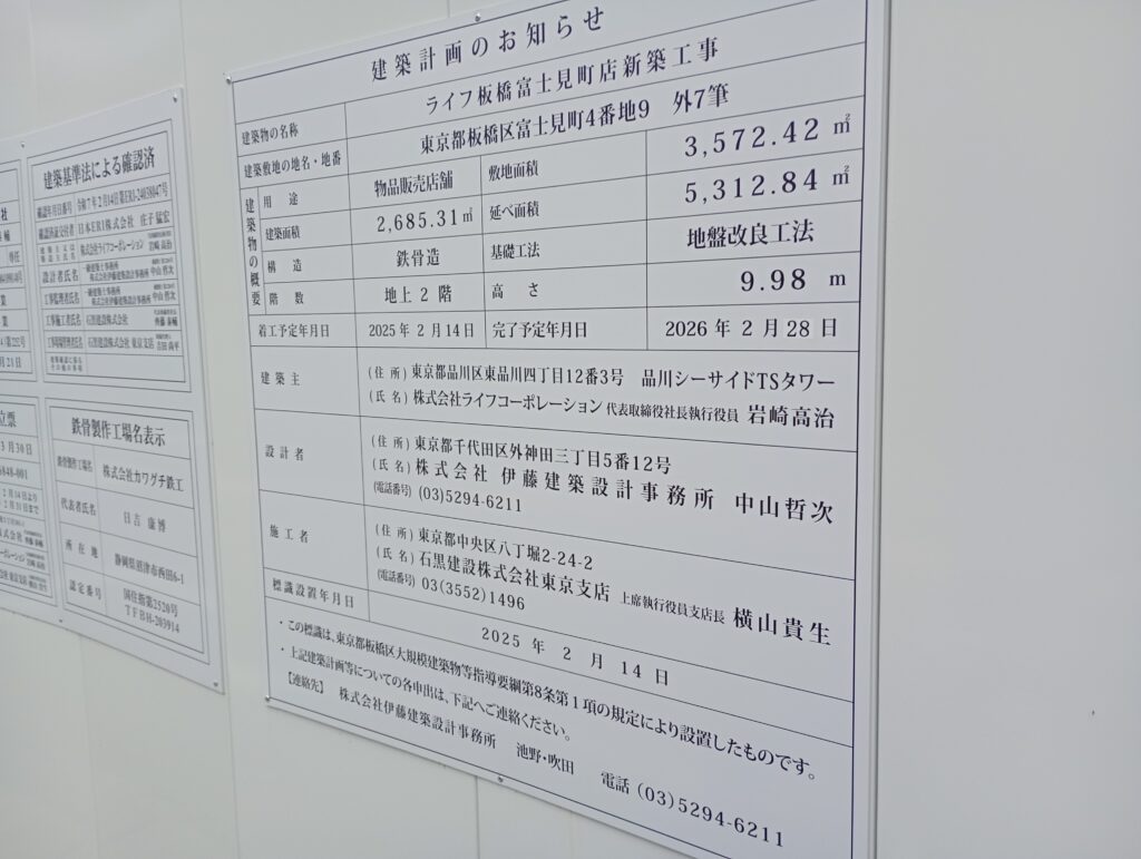 2026年2月に板橋区富士見町4丁目の住宅街に「ライフ板橋富士見町店」がオープン予定。富士見町の買物の利便性がグッと向上しそうですね。