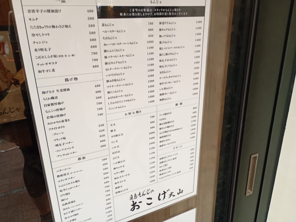 素もんじゃ780円が最安値で、だいたいもんじゃとお好み焼きは1,000円前後の値段設定みたいですね。