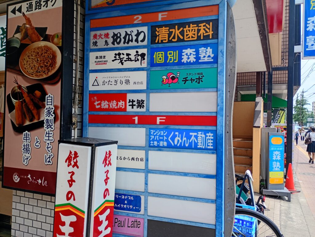 駅に面した側には不二家さんやスシロー京樽さん、牛繁さん、森塾さんといった大手のテナントが入っています。