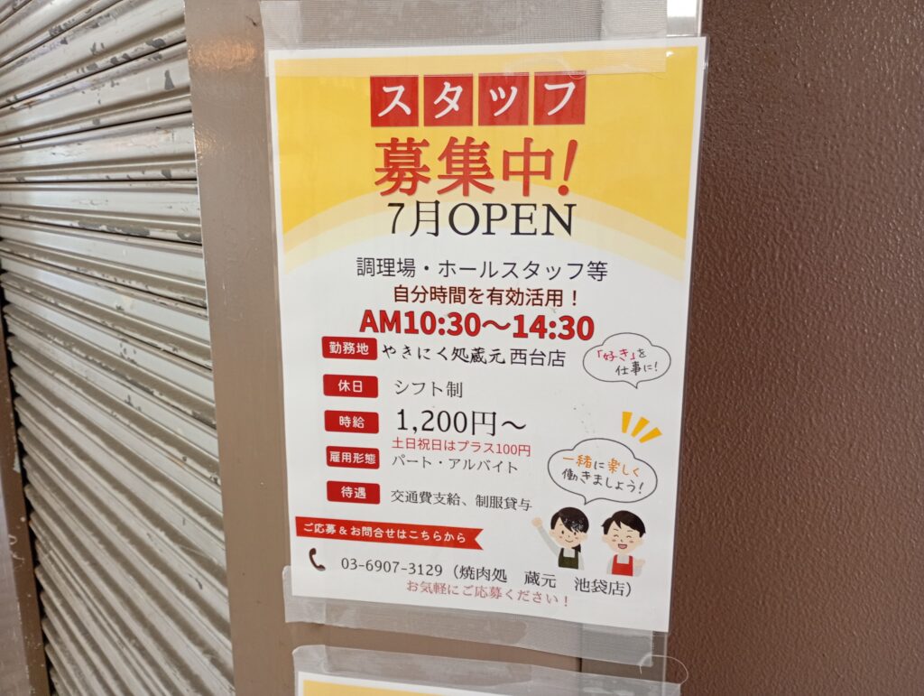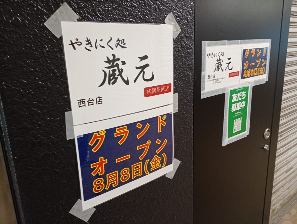 こちらが7月中旬オープンの焼肉屋さんになります。「やきにく処蔵元西台店」と記載があります。