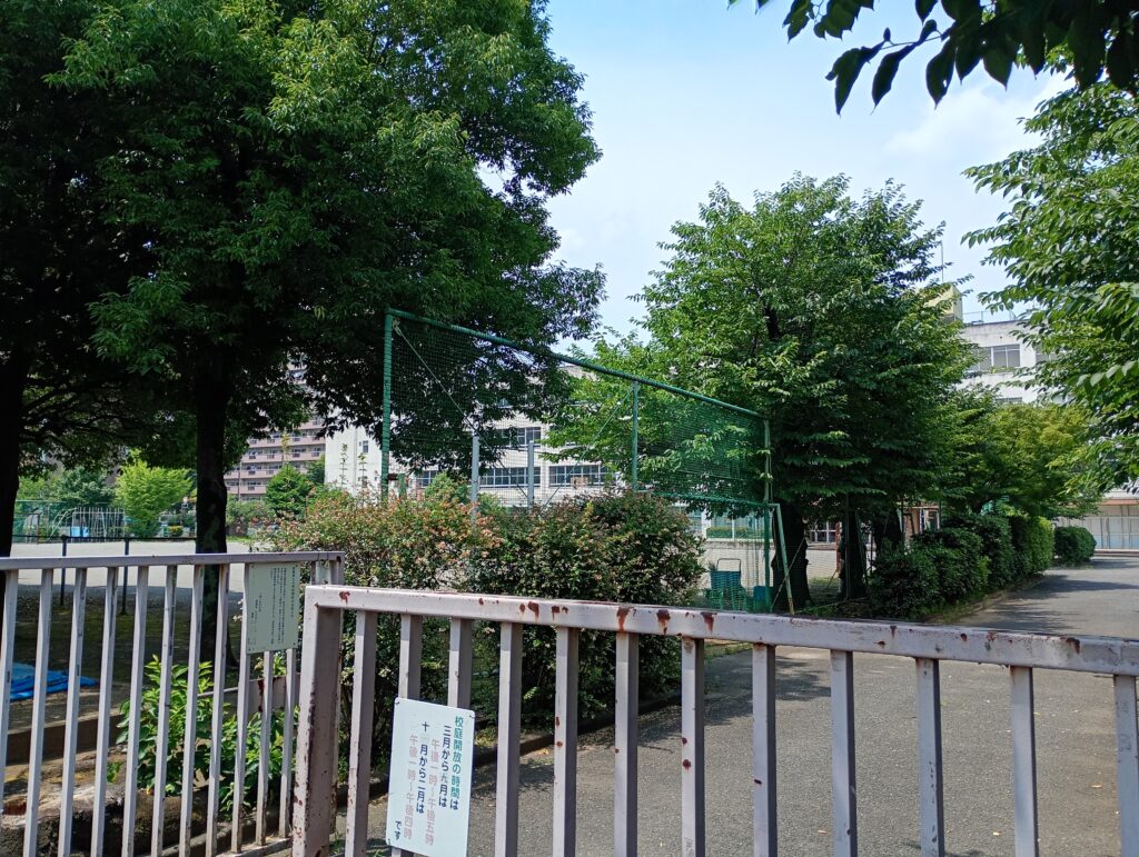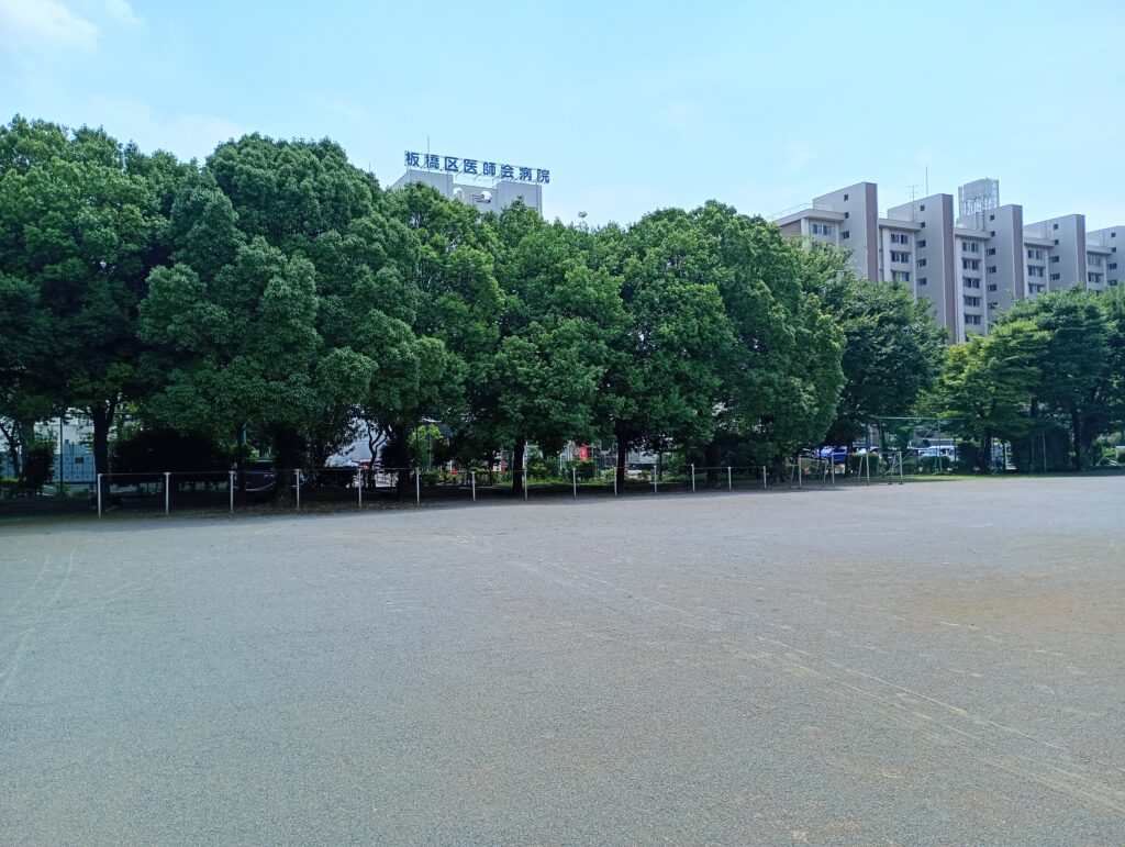 校庭からは高島平団地や板橋区医師会病院が見えます。