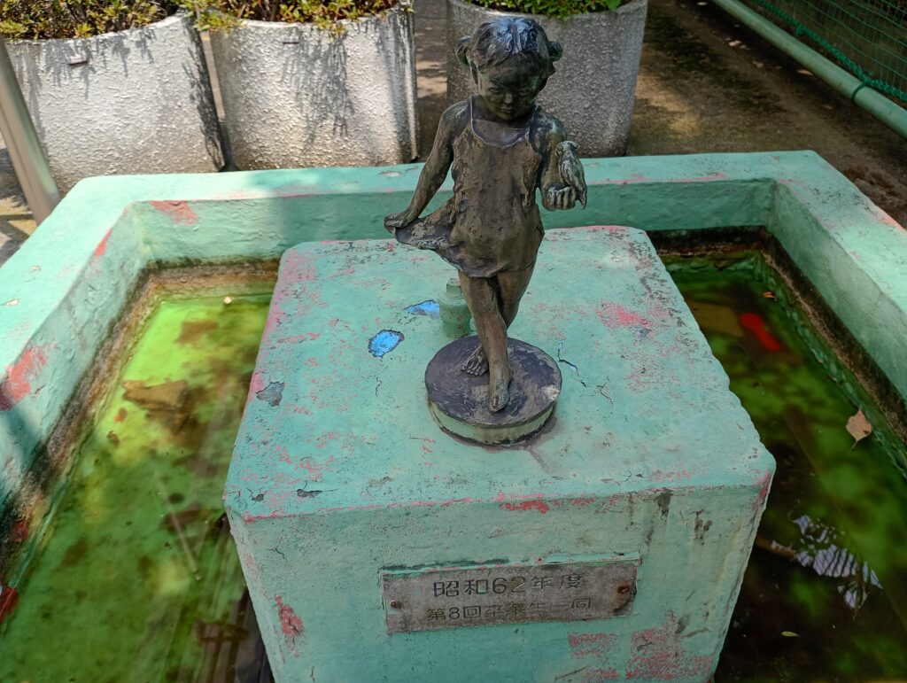 こちらは昭和62年の第8回卒業生が残していった彫刻ですかね。