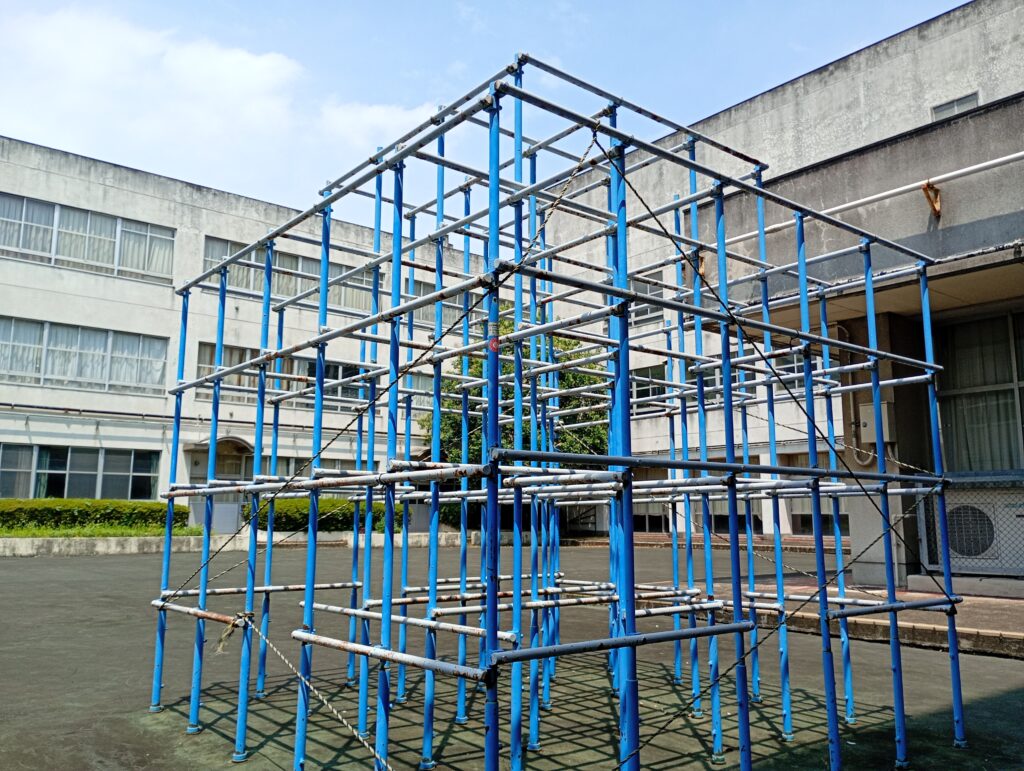 かつては校庭にあった登り台ですが、今は校舎の脇においてあります。