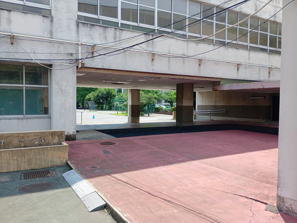 高島平第七小学校には珍しい中庭があります。中庭にはジャングルジムがあり、開校当時は校庭にも中庭にも元気の子どもたちの声が溢れていたのでしょう。
