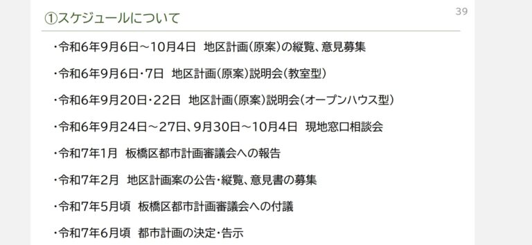 住民の方は高島平団地への愛着やタワマンがそびえ立つことへの複雑な思いもあり、反対署名活動などを行い、2025年4月に団地の2自治会が反対署名3538筆を区に提出しました。しかし、提出した6日後の4月21日、区は区都市計画審議会に地区計画の決定について付議し、賛成18、反対1で可決されたそうです。