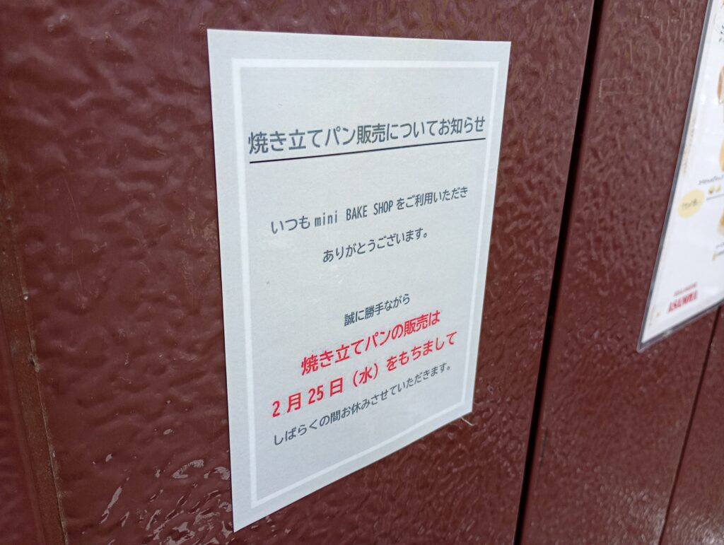 ちなみに、焼き立てパンは暫くお休みになるそうです。