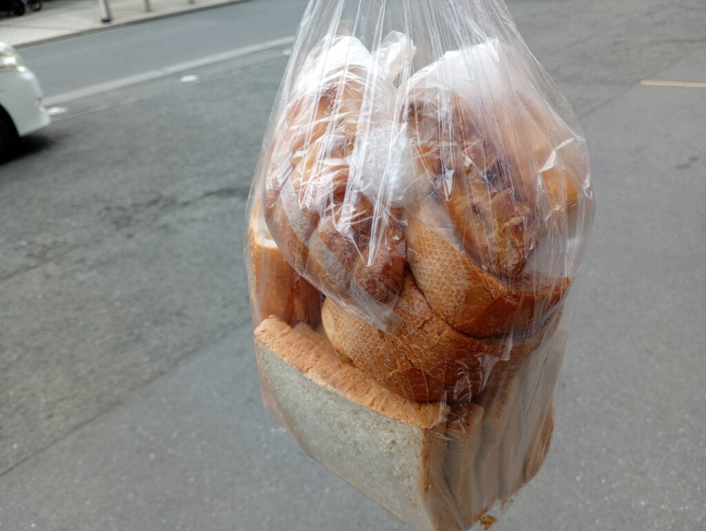 今回はいつものパンの詰め合わせ500(税込み)を二袋購入させて頂きました。中身は店舗から戻ってきた商品のフードロス対策も兼ねて販売されていますいるそうで、だいたい定価で購入すると3-4倍の内容のパンが詰まっているそうです。