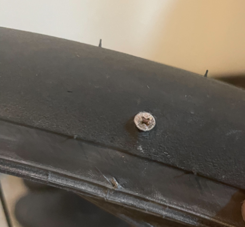 少し前なんですが、ドンキの駐輪場に自転車停めてたら、ほぼ人為的に差し込んだであろうネジによりパンクしました。ひでぇことしやがるぜ😭