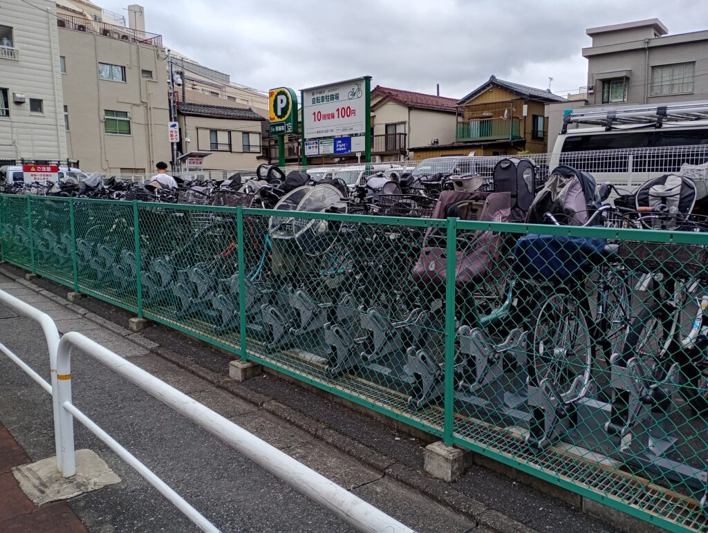 成増一丁目の楽器店の裏の駐輪場は隣同士の車間が狭くてかごが変形したりします。