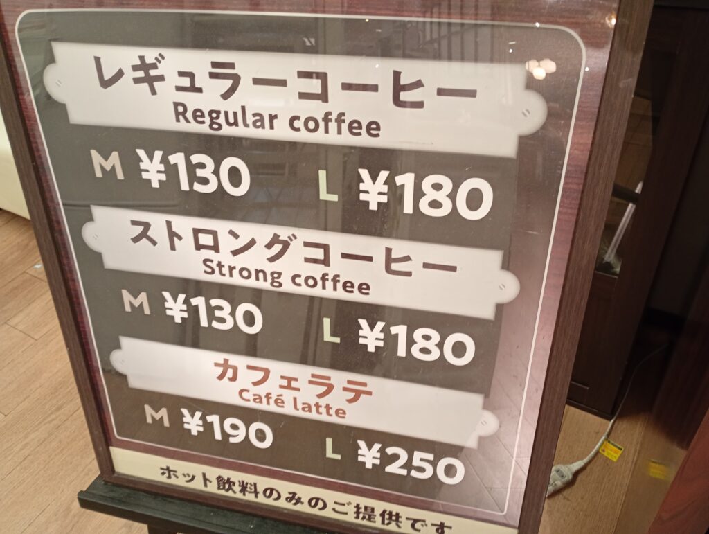 130円でレギュラーコーヒーMが購入できます。家具等を探しているとついついテンションが上ってしまうのですが、そんな時にちょっとコーヒーブレイクはいかがでしょうか。