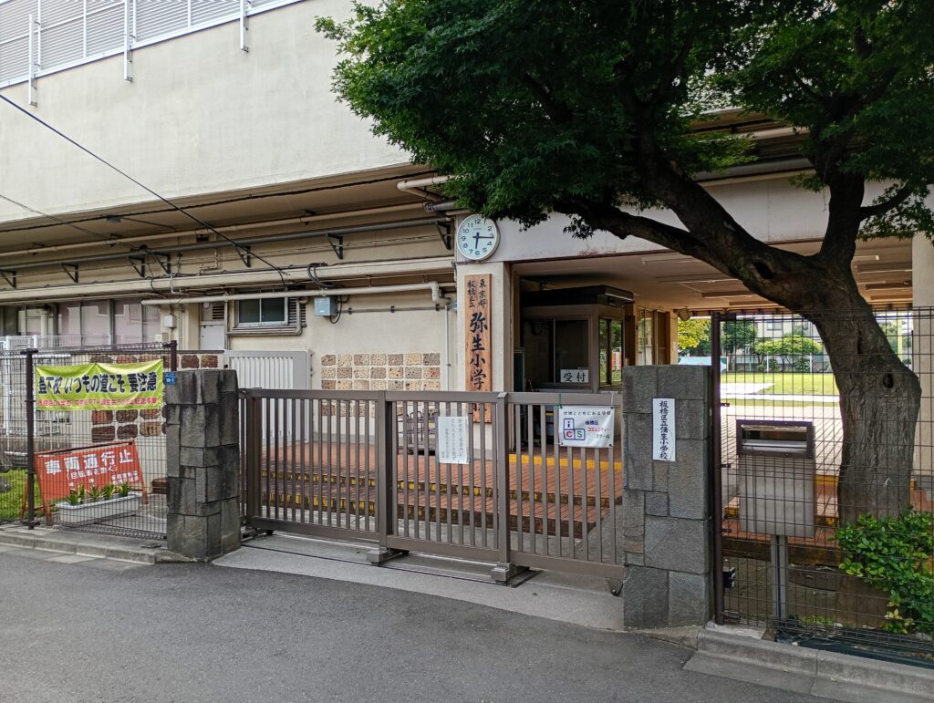 こちらが盆踊りの会場となる弥生小学校になります。1956年の開校した伝統のある小学校ですね。