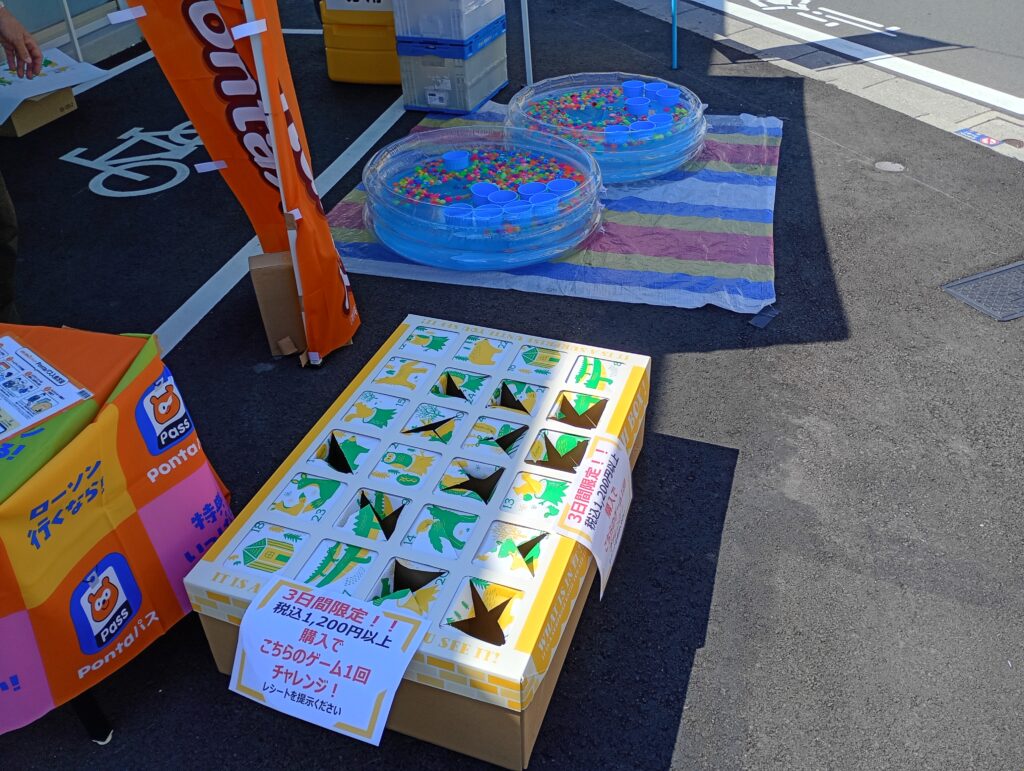 オープン記念のティッシュや外には子供向けのゲームがあったりしました。