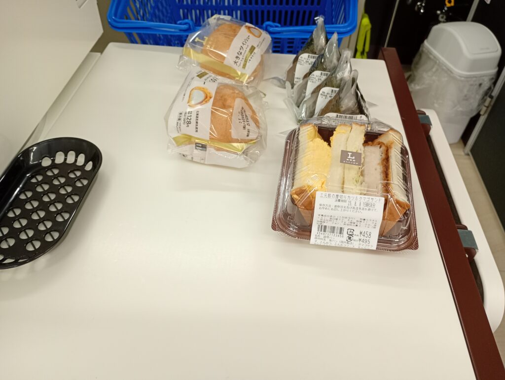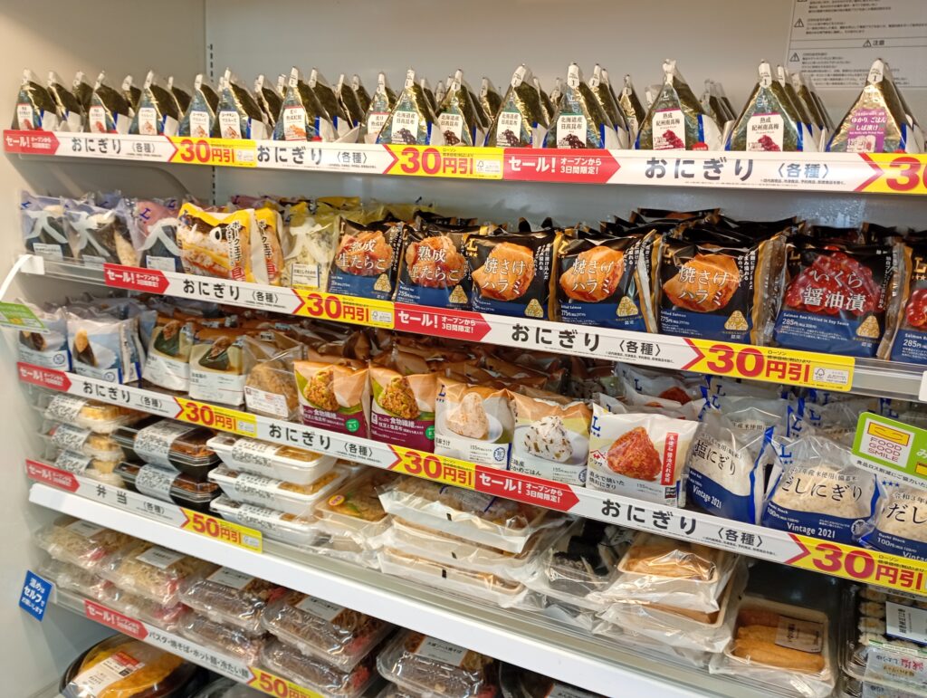 オープンセールでおにぎりやデザートなどが安くなっていたので、お昼ごはんを購入してみました。