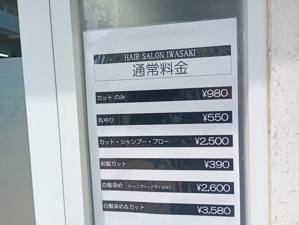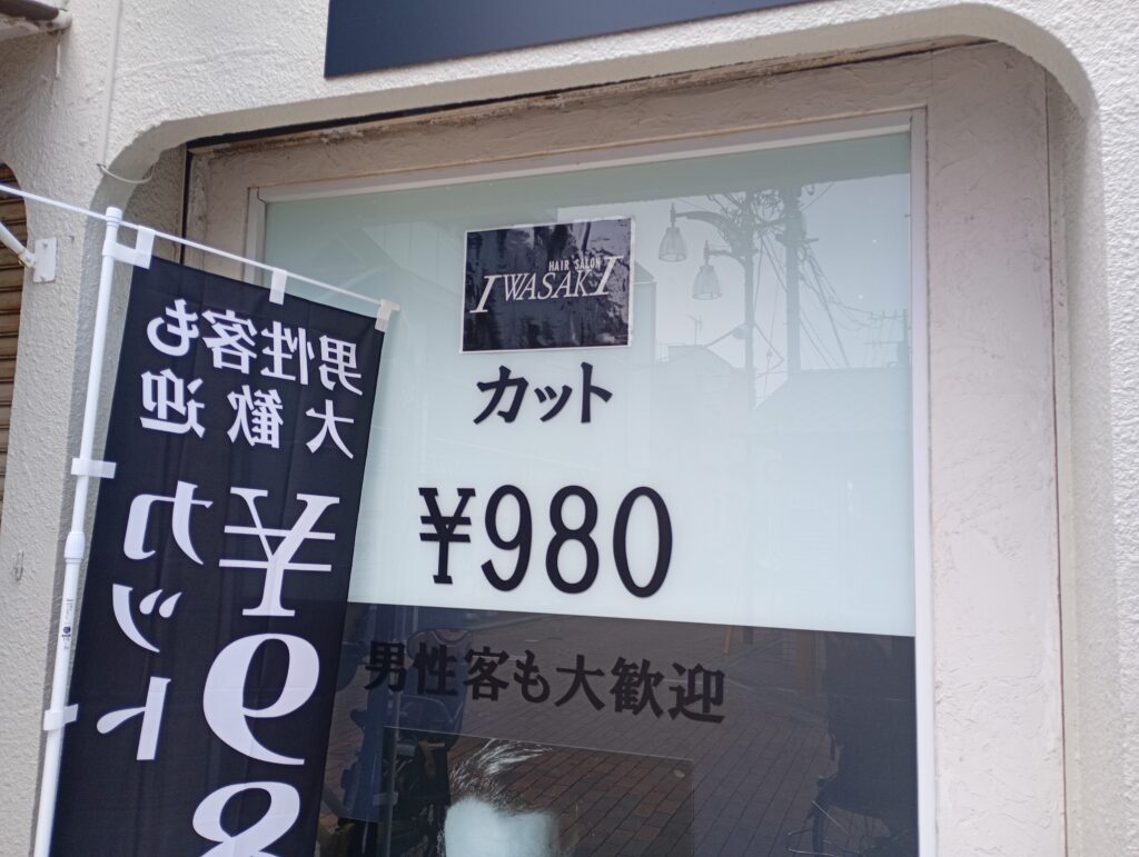 カットのみ980円で、丸刈りは550円、平日限定カラー1,980円など、インフレ傾向にある昨今の情勢に反し、1,000円カットのお店よりもお手頃価格ですね。