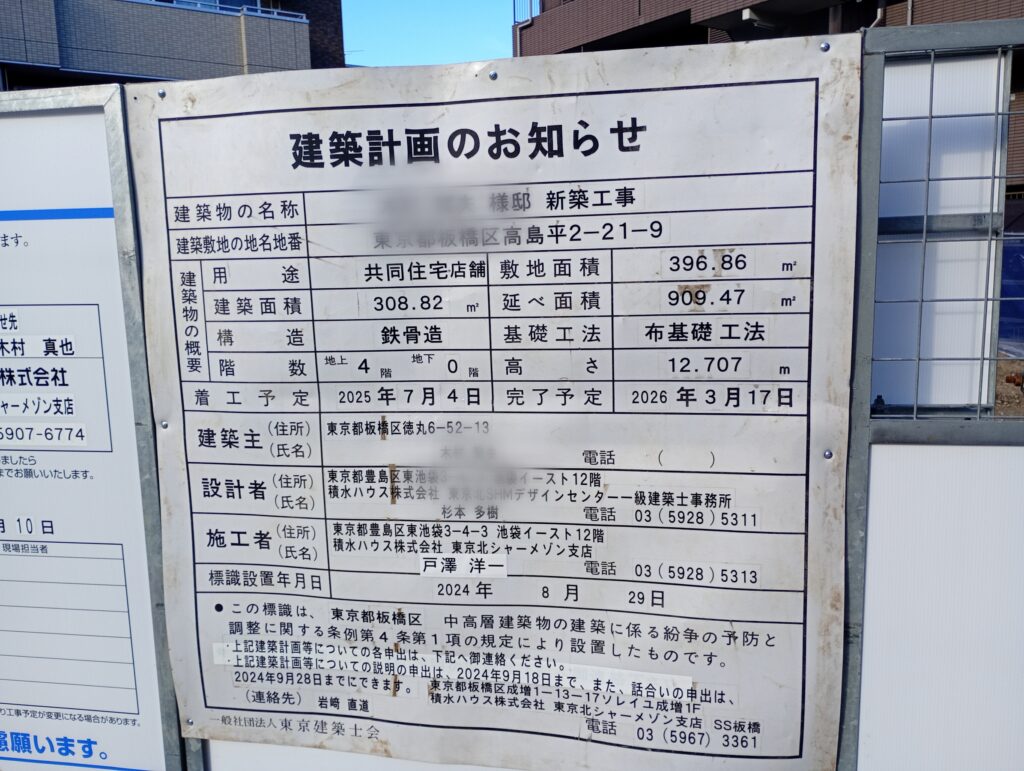 8月に前を通りかかると建設計画が出ていました。地上4階建てのビルが建設されるのですね。