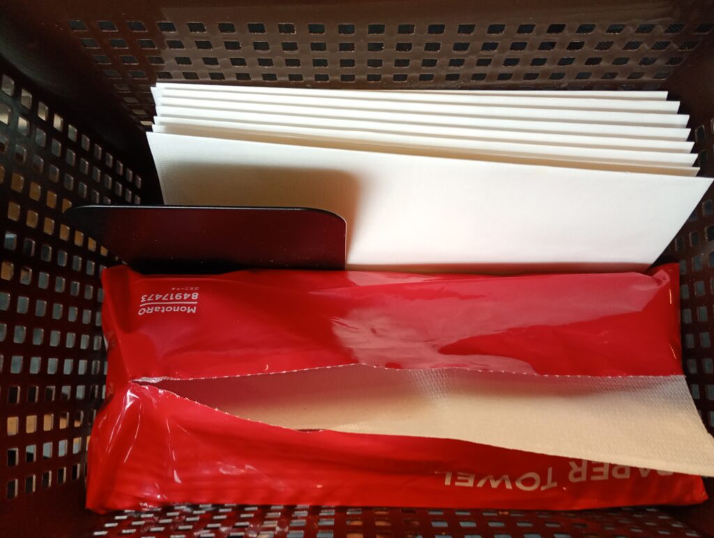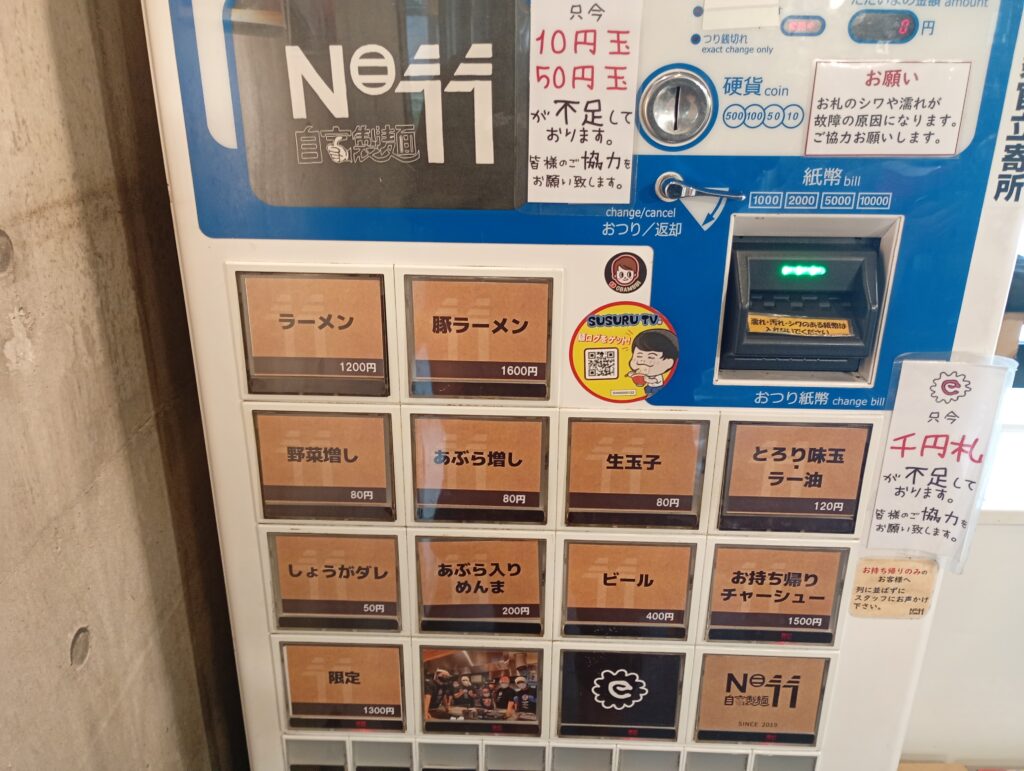 机の下の荷物置きにティッシュと紙エプロンがあるのですごい助かります。ワイシャツにラーメンの汁を垂らして何度恥ずかしい思いをしたことか💦口コミを見ると女性客もいらっしゃるそうですが、こういった配慮が女性にも受けているのですかね。
