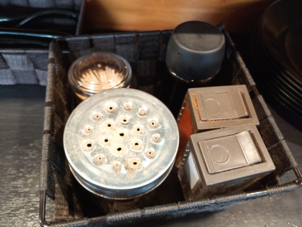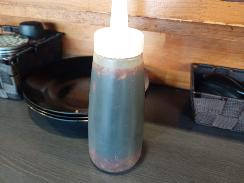 テーブルには「かえし」や「胡椒」、「唐辛子」などが調味料として用意されています。個人的にはレンゲがあるのがありがたいです(直営店はレンゲない店が多いので)。