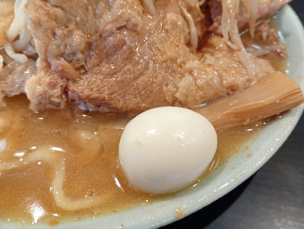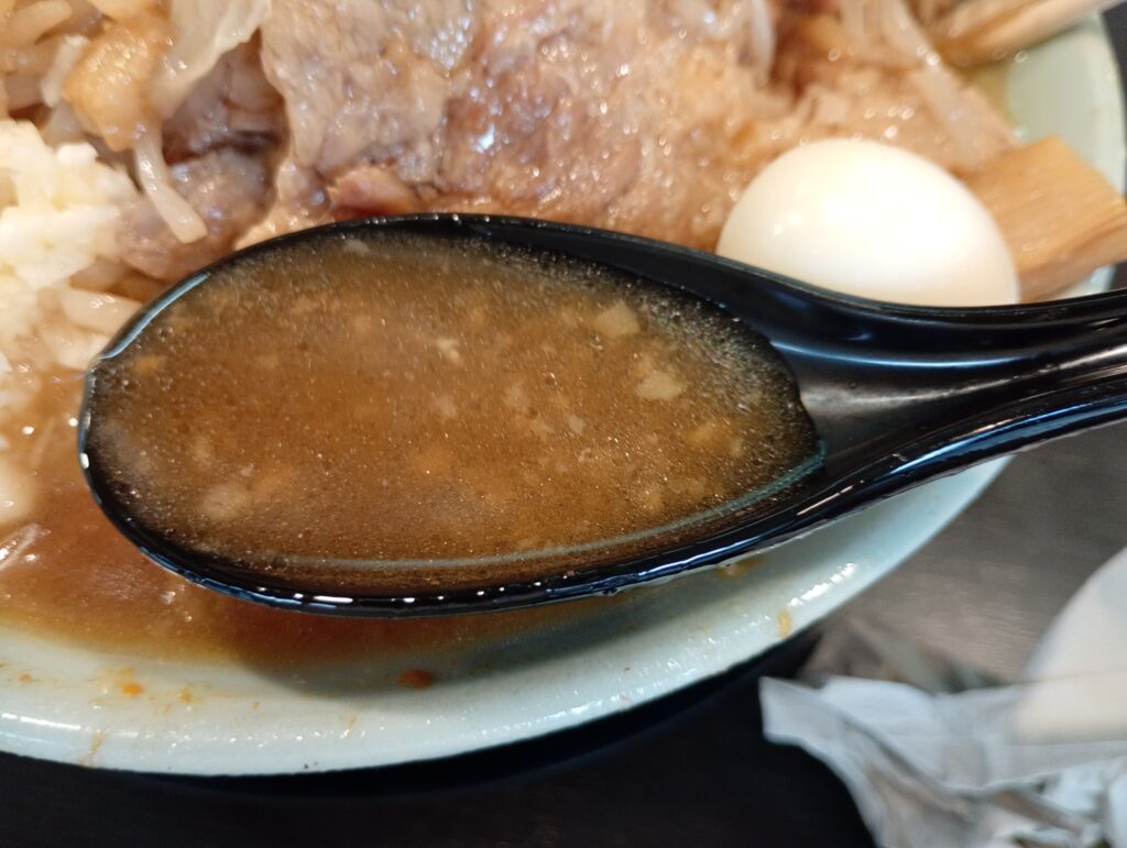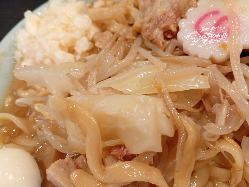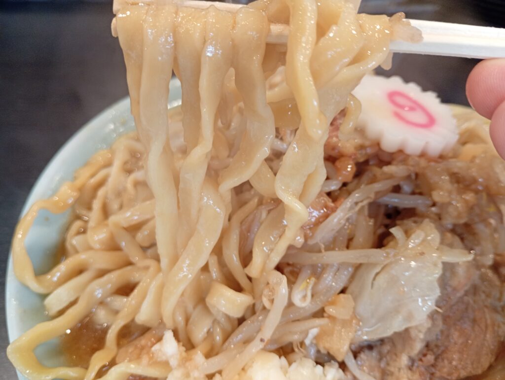 麺は二郎系の太めの平打ち麵ですが、他店に比べてもちもちでツルツルしていて、讃岐うどんのようなのど越しの良さが印象的でした。