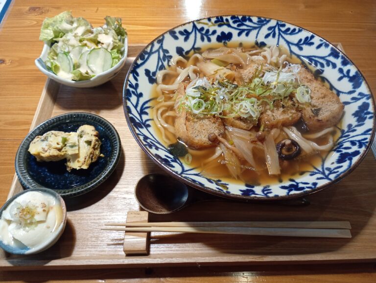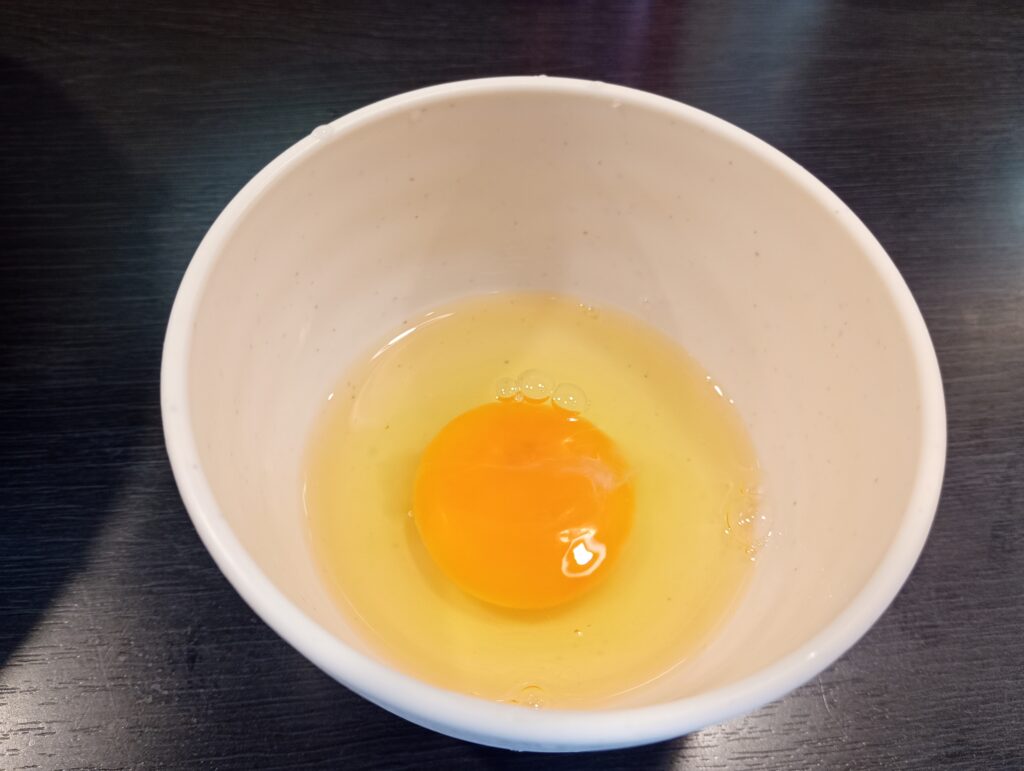 卵は鶉が入っています。「麺少なめ」や「半分」の方には生卵がサービスについてきます。生卵は麺に絡めて食べると味チェンになっていいですよね。