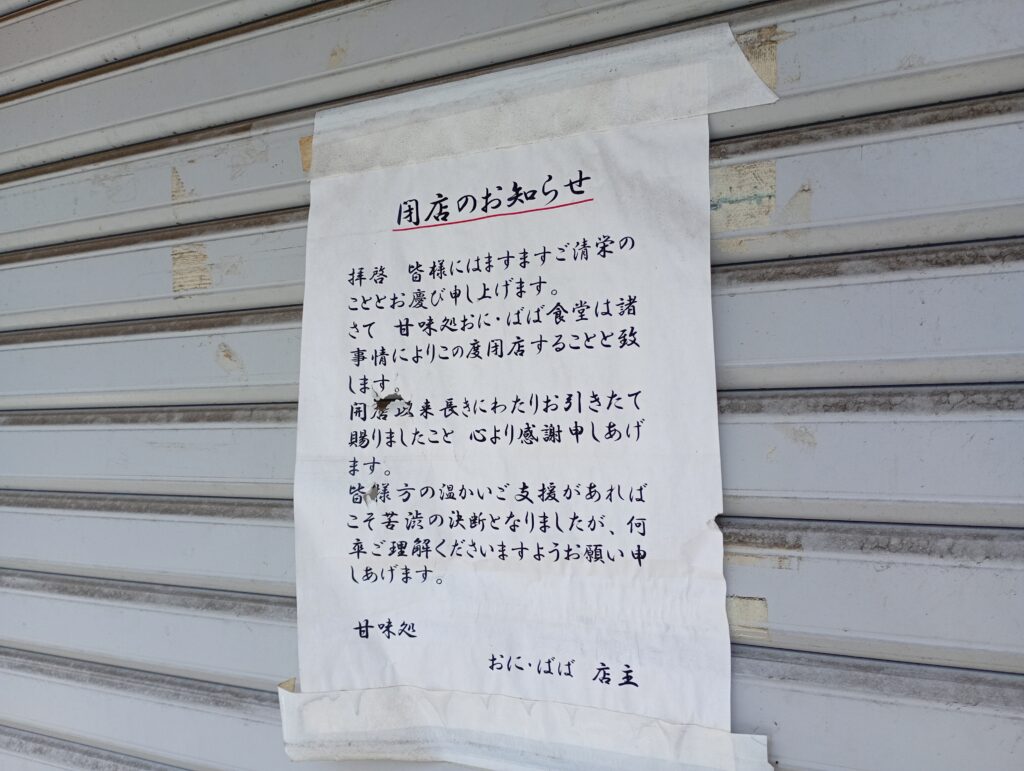 おにばばさんが閉店されていました。シャッターが閉まっていて、自転車がシャッター前に多く駐輪されていると思っていたのですが、よくよく掲示を見たら閉店されていました。教育科学館の帰りに何度かよらせて頂きました。ありがとうございました。